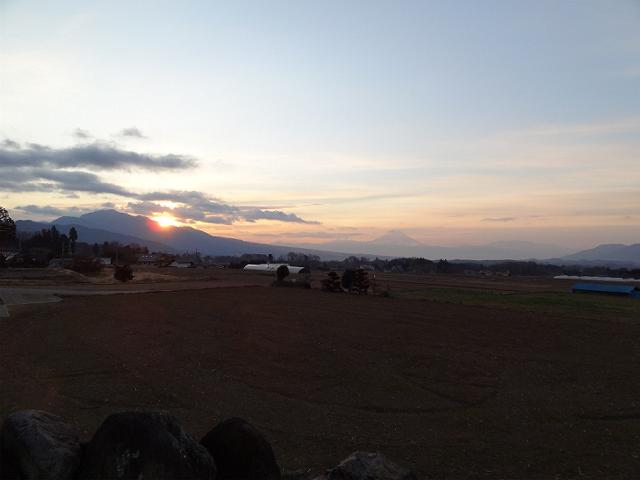 茅が岳と雲の間に初日の出を